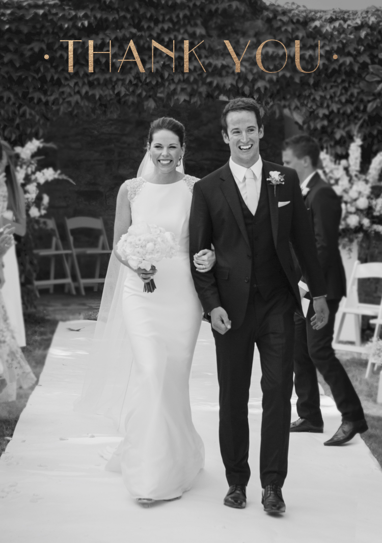 Send your guests an extra special message of thanks with a personalised wedding photo thank you card. This beautiful memento includes a stunning foil pressed art deco design.