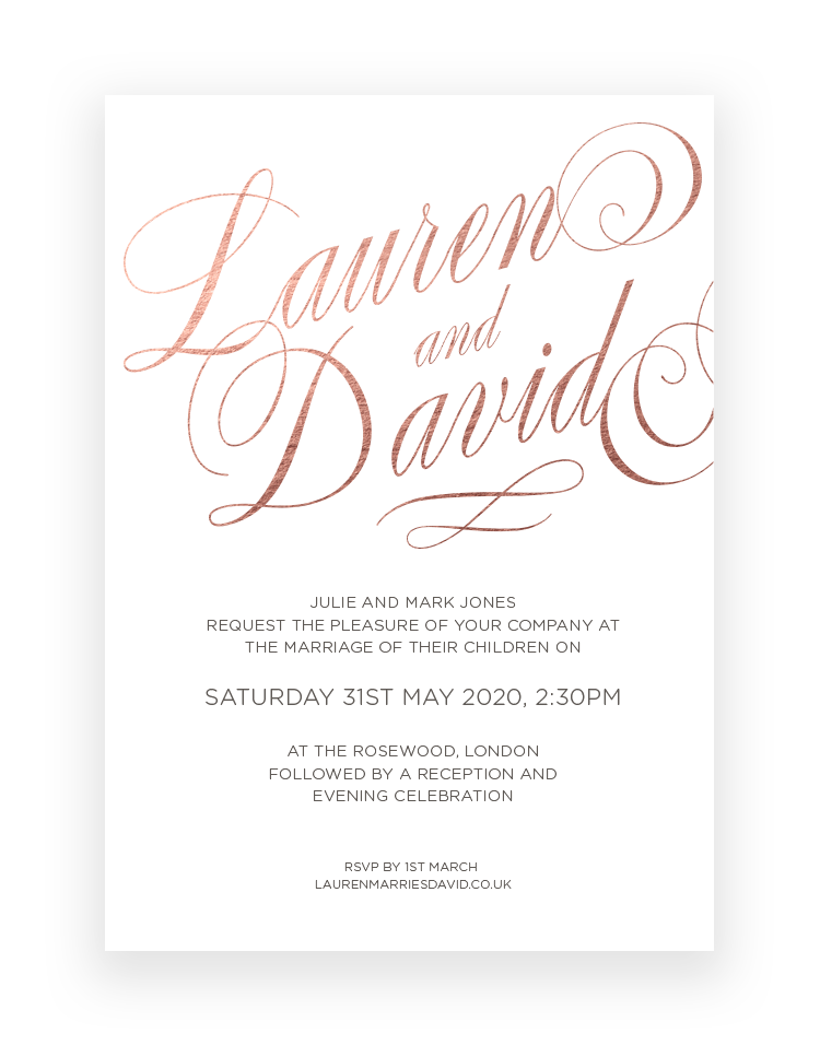 The Foil Invite Company are specialists in Hot Foil Printing, a traditional artisan method of printing where the card is hand stamped with a beautiful metallic finish. This makes our products feel luxurious and extra special. Your stationery will be hand foil printed and packaged by us in our Cheshire studio to ensure every order is perfect.