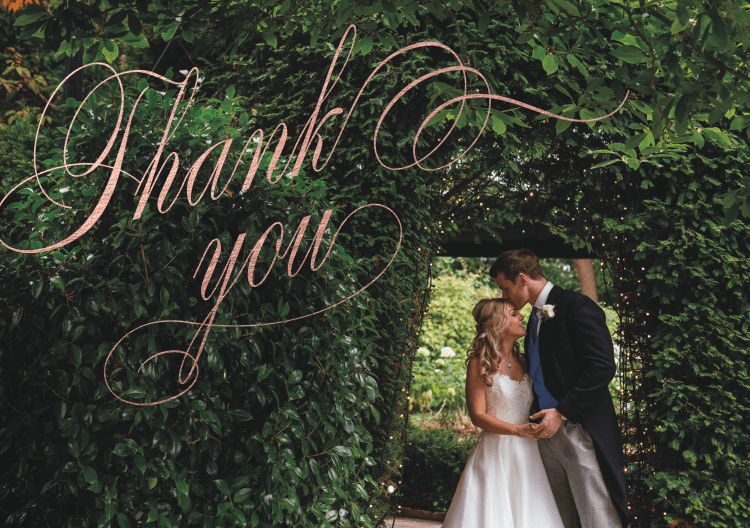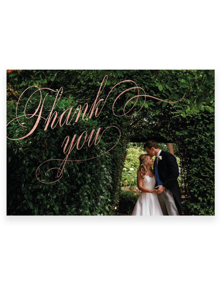 Send your guests an extra special message of thanks with a personalised wedding photo thank you card. This beautiful memento includes stunning foil pressed lettering.